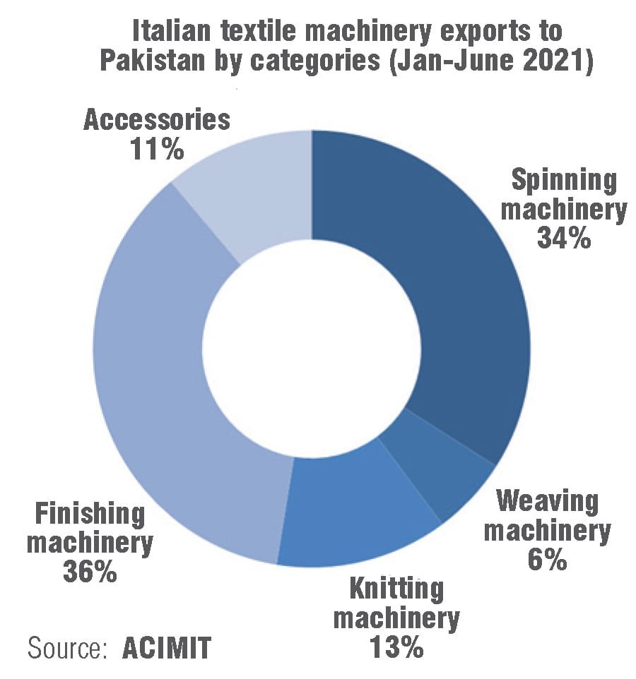 Textile machine exports to Pakistan reached 52 million Euro from January to June 2021, From July-October (2021-22) Pakistan’s exports to Italy reached $327.871 million