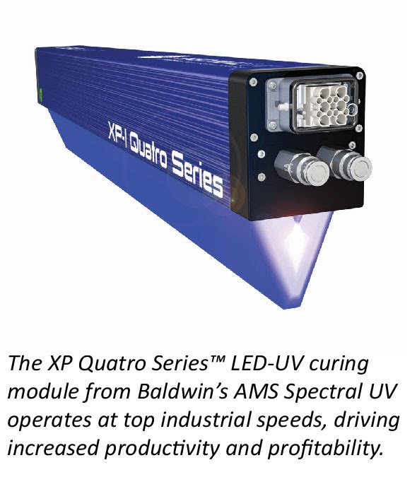 “When producers are ready to make use of the highest LED-UV doses to scale up their manufacturing lines and increase them to the highest speeds, we should be the first company they call,” said Jonathan Fore, Commercial Lead for Baldwin’s AMS Spectral UV. “Our new XP Quatro is like putting curing afterburners on your production line.”