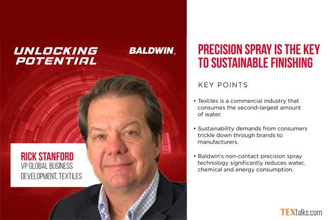 Mr. Rick Stanford, Baldwin’s Vice President of Global Business Development for Textile Technology, spoke about Baldwin’s precision spray systems for sustainable moisture and finishing chemistry textile manufacturing.