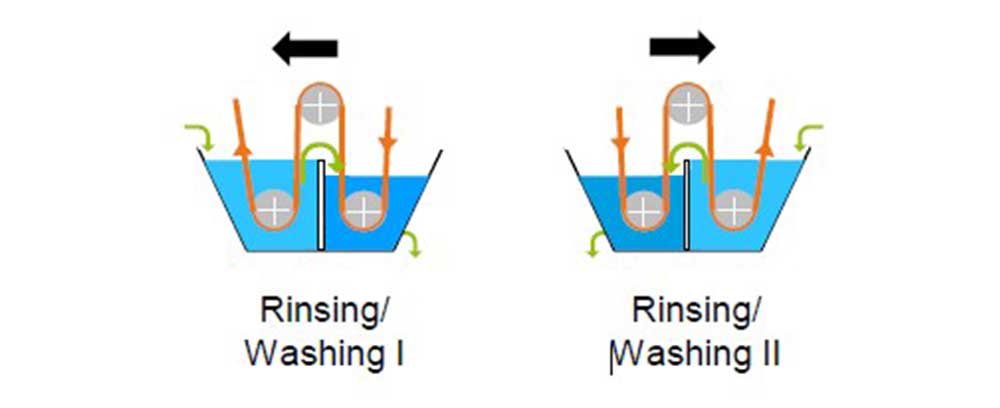 TwinJig technology shows two independent troughs – saving up to 35% of water.