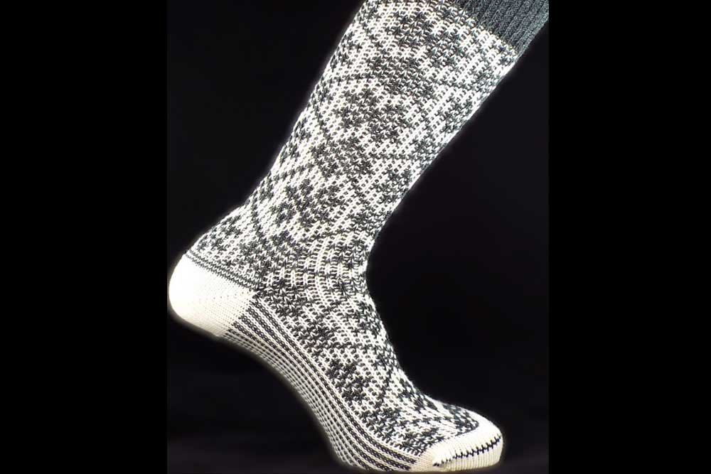 The distinctive sleeve structure seen in this image is achievable exclusively through the combination of BUSI® MEDICAL and BUSI® RIMAGLIO. Their machines are designed to enable the production of a wide variety of socks and sleeves.
