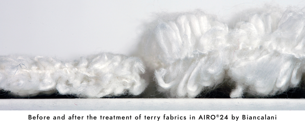 Among other finishing precious results, we can highlight the ones coming from processes that act deeply on cotton fiber structure, such as mechanical softening – does AIRO® HAND effect by AIRO®24 ring any bell? The mechanical action reduces the usage of chemical products drastically or in some cases makes chemical products totally unnecessary and ensures a longer-lasting effect, both of which earn it an indispensable characteristic: sustainability. And here comes the air: the machinery AQUARIA® and AIRO®24 from Biancalani use air to move and handle the fabric during a fully open-width process so that it all becomes completely safe, and at the same time washing and drying processes are more efficient and the softness unmistakable. In fact, when used in the right way, as in Biancalani machines, air can definitely be the most valuable ally. For example, by pushing water with air, the action will be much more intense and the water needed far less. In any treatment of cotton and blends.