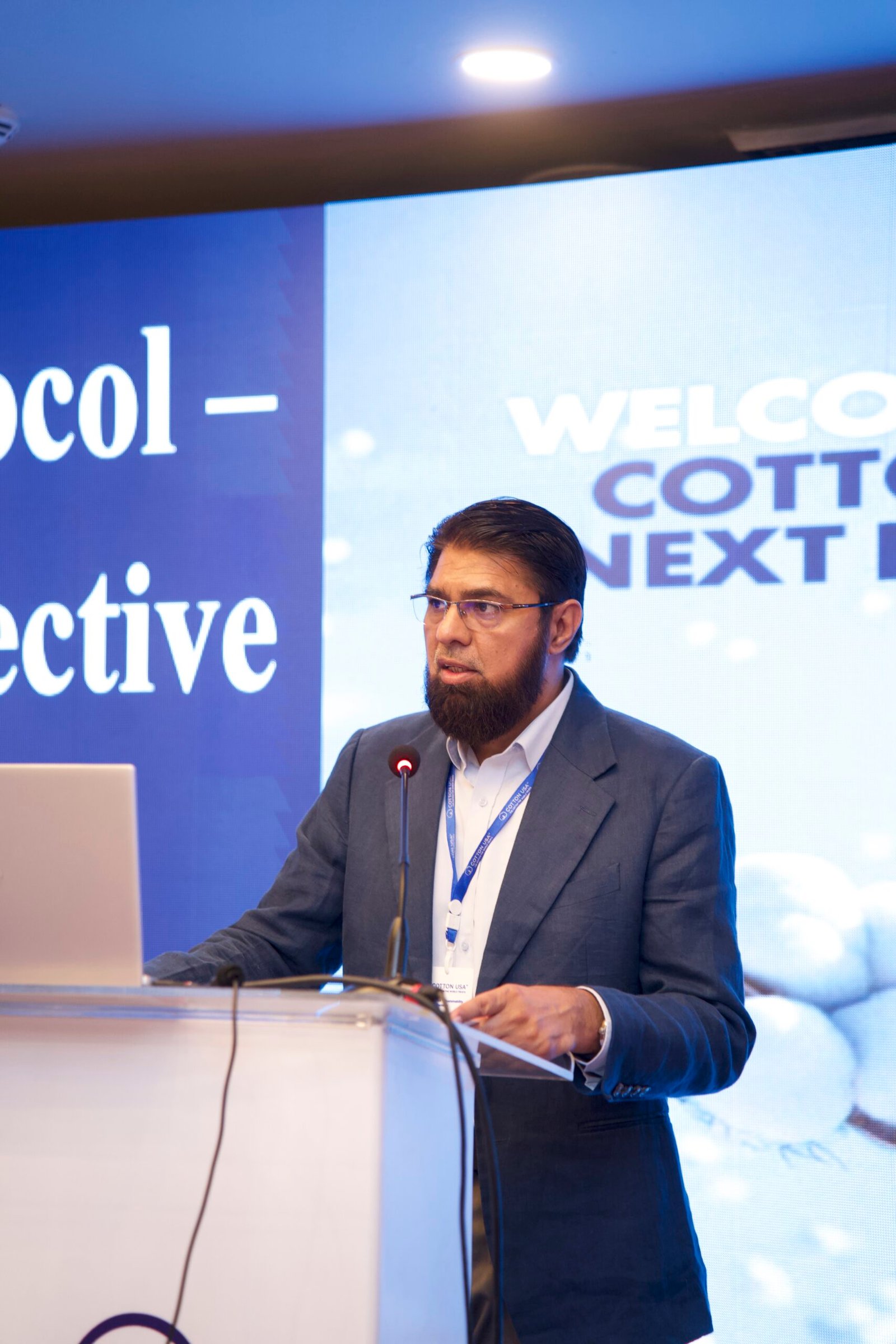 The seminar opened with Mazhar Mirza, CCI’s representative for Pakistan, who welcomed attendees and set the stage for a series of impactful presentations. William Bettendorf, Director South Asia and Supply Chain Marketing at CCI, shared the latest updates on the U.S. Cotton Trust Protocol, emphasizing its growing importance in global sourcing.