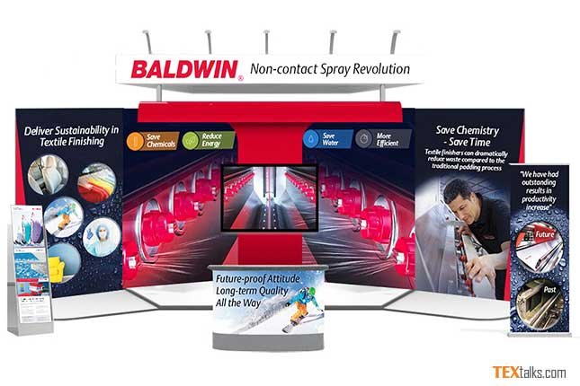 In Baldwin’s virtual booth, the company will showcase its non-contact spray systems for finishing and remoistening. Its TexCoat G4, TexMoister G2 and Ahlbrandt Rotor Spray technologies are designed to save chemistry, time and production costs, while enabling sustainable textile production.