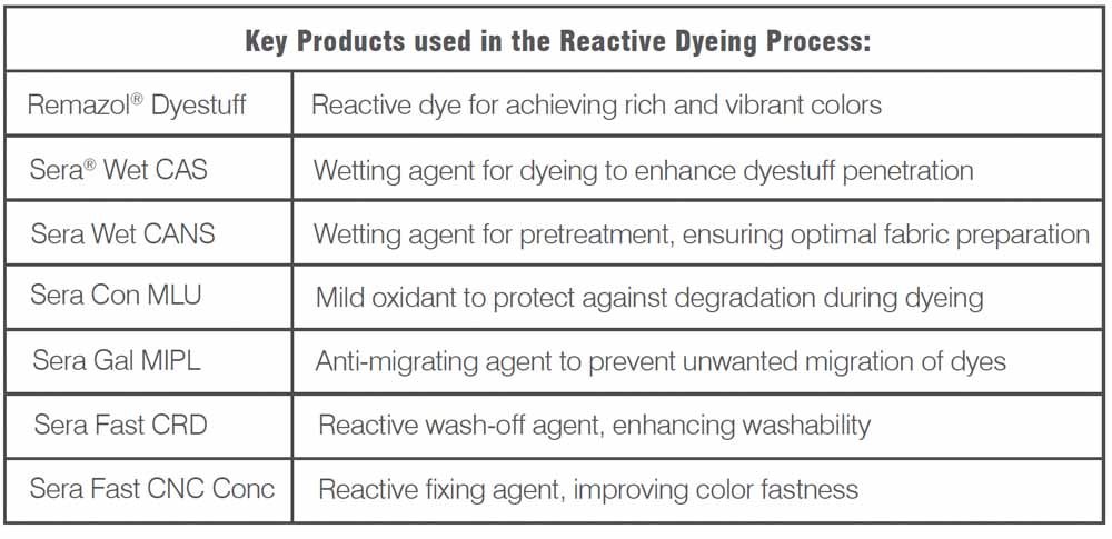 While reactive dyeing delivers vibrant colors, achieving solid shades without washing down remains a challenge. DyStar technical team came up with tailored solutions to mitigate this issue, ensuring deep, rich hues with enhanced fastness that meet stringent industry standards for durability and performance.