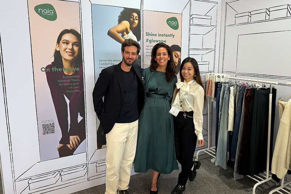 At Textile Exchange, Naia™ is showcasing the versatility of its sustainable fiber platform through three applications that address brand needs across performance, fashion, and circularity. Designed for light sports and urban lifestyle wear, the Naia™ On the Move blending solution builds on the exceptional performance of Naia™ Renew staple fiber. Naia™ Denim offers comfort and circularity for authentic and fashion denim, also using staple fiber formats. Meanwhile, the new Naia™ GlowNow campaign pays tribute to the classic Naia™ filament yarn, known for its exceptional comfort, easy care and style in low-impact women’s fashion.