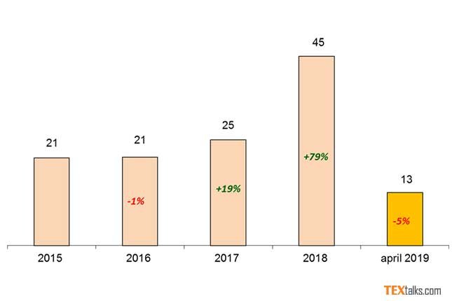 In 2018, the Italian exports of the sector in Egypt recorded a surge, reaching a value of 45 million euros, up 79% compared to the previous year.