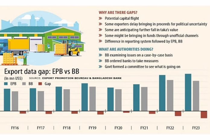 Munir Hossain, vice president of the Federation of Bangladesh Chambers of Commerce and Industry (FBCCI), who also attended the EPB meeting said exporters are being blamed for the export proceeds gap, which is not correct. We have asked the EPB to investigate the exact cause and reveal it.