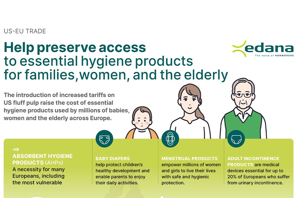 EDANA, the leading association representing the nonwovens and related industries, which include the manufacturers of hygiene products, such as menstrual products, adult incontinence, and baby diapers, and their value chain, acknowledges the European Commission’s potential decision to implement countermeasures in response to the recently imposed US tariffs.