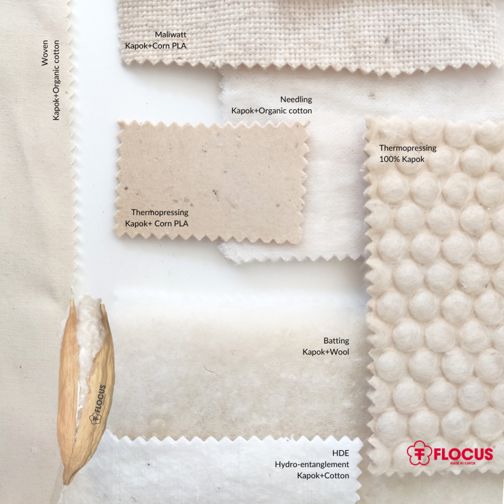 Flocus ™, the trademark for kapok fibers, offers a range of kapok textile materials such as fibers, yarns, textiles and nonwovens.