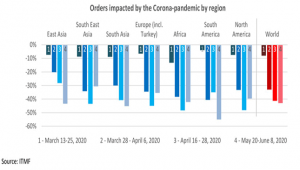 On a global scale, current orders continue to be down on average by more than 40 percent. When looking at expected turnover in 2020 compared to 2019, the expectations remained unchanged since the 3rd ITMF Corona-Survey.