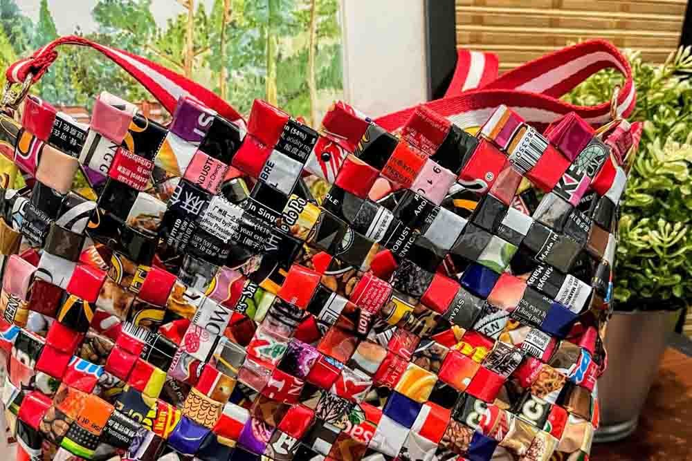 Handbags made from mixed PET waste through sustainable recycling collaboration