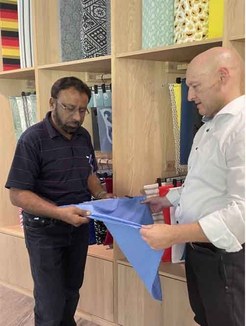 Nazer in Karachi employs 46 people. In addition to Mayer & Cie., we also represent other companies: Brückner, Stoll, Karl Mayer, and Osthoff. This gives us a considerable market share in the premium segment.