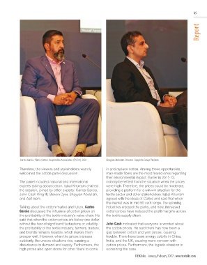 panel discussions, the first panel discussion was and cotton products export accounts for 55% of all and brands remains feasible, which makes them gap between cotton and yarn prices, causing never be favorable for this sector as the spinning various drawbacks. Therefore, the cotton industry leaves more than co
