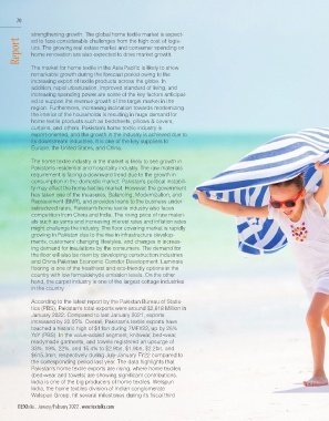 consumption in the domestic market. Pakistan's political instabili- and product offerings for the bedding trade will also