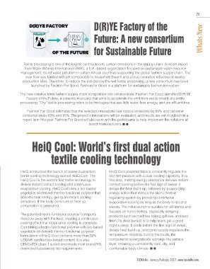 INVISTA’s CORDURA® brand recently announced 21 award wins across 13 categories and 19 fabrics, evaporative cooling. HeiQ Cool uses a bio-based delays the heat build-up, followed by a vaporizing