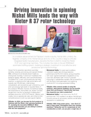 Technical Director, Nishat Mills Ltd, shares firsthand about their performance? Specifically, how have TEXtalks: Can you please elaborate on the benefits TEXtalks: How have the R37 machines improved your Rieter rotor spinning machines? machines.