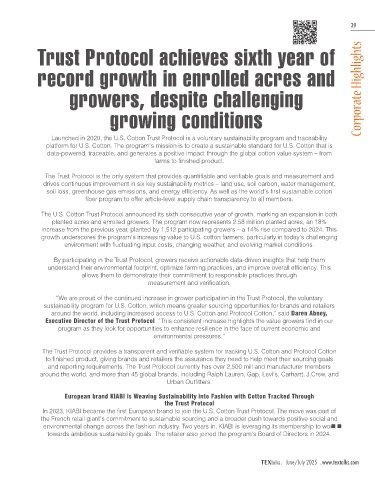 showing U.S. cotton's top-quality yarn strength, low advancing circular product lifecycles, reinforcing its “We are proud of the continued increase in grower participation in the Trust Protocol, the voluntary