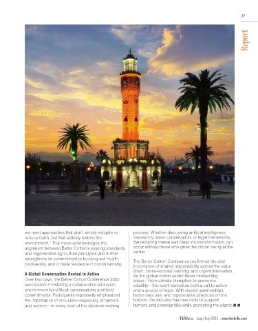face of escalating global uncertainty, climate stress, unpredictable conditions. Speaking via video from practices with meaningful results. These practices In a panel moderated by Better Cotton’s Vidyun momentum for bold climate and social action has Agriculture Over two days, the Better Cotton Conference 2025 crises—from climate disruption to economic