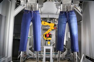 • Two people with two robots and eight lasers are able to produce 10,000 pairs of jeans a day sustainably