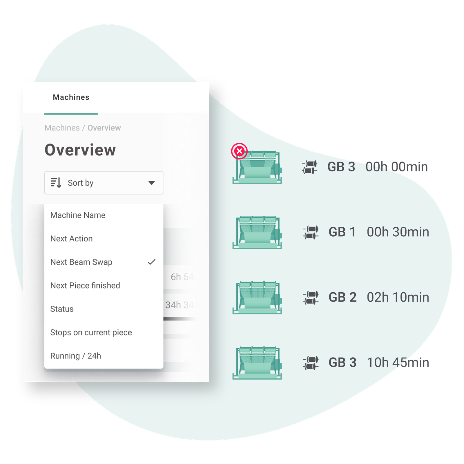 To maximise machine utilisation and thus profitability and delivery reliability, a special sorting function has also been integrated into the k.management dashboard. The feature shows the next planned machine stops and any unplanned down-time. Planned service interruptions occur, for example, due to beam changes and are sorted based on urgency. Unscheduled stops are triggered by things such as a yarn break, and are immediately recognisable thanks to the machines being ordered and grouped according to status. By providing information about the upcoming measure at an early stage, resources can be used optimally: it is always clear which employee has to look after which machine and when, therefore meaning production runs as efficiently as possible.