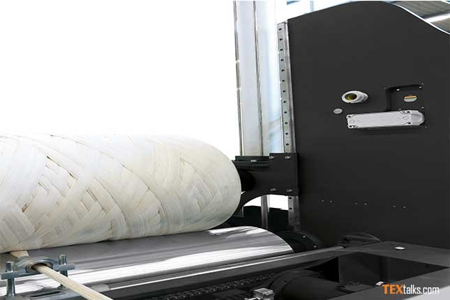 The rebeaming process of the PRODYE-R convinces by its speed. The possible time saving compared to conventional similar plants is 15 % to 20 %, which can be used for reducing the required number of LONG CHAIN BEAMERS. An important prerequisite for this fact, however, are technical solutions that ensure a homogeneous buildup of the ropes during their passage through the machine. Ropes consisting of threads that stick together considerably, can only be separated slowly after dyeing. Otherwise, it comes to yarn breakages, which have to be repaired by knotting, resulting in inferior quality and efficiency losses during weaving. Special attention is paid to a uniform rope structure already during the feeding of the material to the machine.