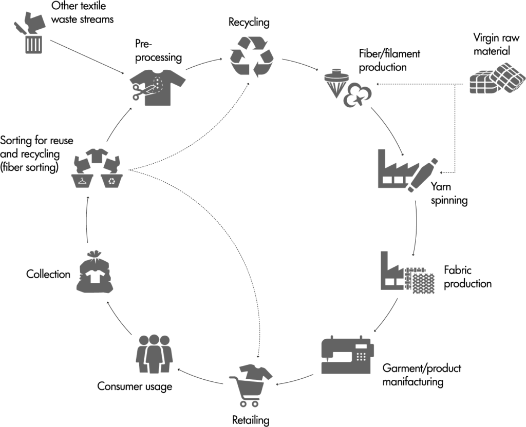 Studies have shown that yarns and fabrics produced from recycled fibers may be better for applications where the strength of yarns and fabric is less critical, but where control of unevenness, imperfections, and handle properties is required. Consequently, recycled fibers are most suitable for manufacturing casual clothes such as T-shirts, sweatshirts, and sleepwear. In China, tons of denim jeans trousers are already made of mechanically recycled fibers.