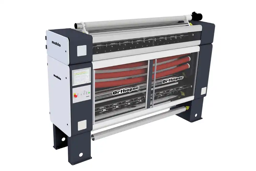 Mahlo’s new Orthopac RVMC-20 plus advances its automatic weft-straightening platform with “double scanning” and AI-supported control. Two detection units—one at the fabric inlet and another at the outlet—combine Feed Forward Control (detect distortions before they reach the straightening rollers) with Closed Loop Control (measure the result and correct it continuously in real time). The aim is straighter fabric at high speeds, with less waste and more consistent quality.