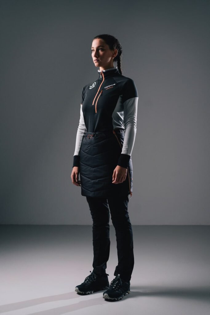 And, lastly, as fresh and alternative garments, Ternua has included Agile Berm and Agile Skirt in Adrenalite, which have layers of insulation that are wind and water resistant and are focused on activities like downhill or cross-country skiing. The outside is made with recycled water resistant (PFC free DWR) Pertex Quantum textile and they have a lightweight yet strong recycled polyamide lining inside. The insulation is 80 g of Primaloft Gold Insulation P.U.R.E technology, which provides a high degree of insulation even in wet conditions. They can be opened on the sides with zippers, so they can be taken off or put on quickly while doing the activity.