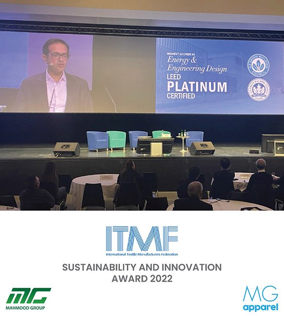 Mahmood Group of Industries and MG Apparel have always acknowledged the importance and role of adapting sustainable alternatives. MG Group gave Pakistan the honor of being among the list of the countries from all around the world who were presented with this award “ITMF Sustainability & Innovation Award 2022”.