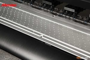 The ability of the Mimaki Tx300P-1800MkIIto switch between direct-to-textile and transfer printing is enabled by its interchangeable platens. When printing direct-to-textile, excess ink penetrated through the fabric is drained by a platen with an ink-receiving channel.