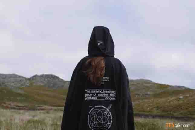 “Our photosynthetic coating is a living layer of photosynthetic microorganisms that we embed into textiles,” explained Dian-Jen Lin of the Post Carbon Lab in London which has worked with Azgard 9 on the development. “What this means is that it absorbs carbon dioxide from the atmosphere and releases oxygen during both its production and the user phase.