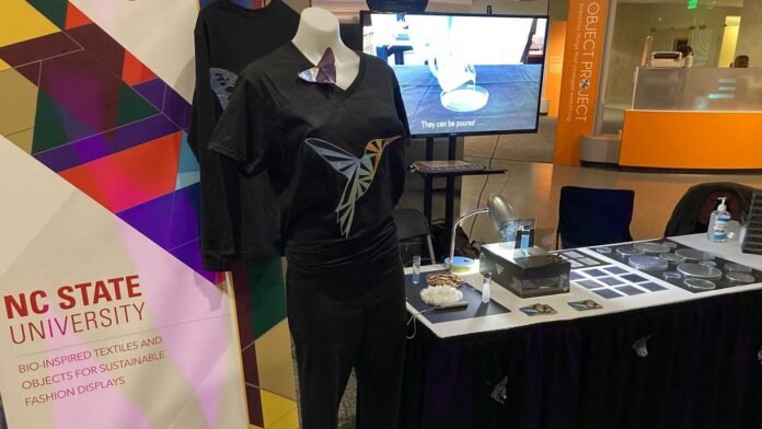 With funding from the Research Opportunity Seed Fund Program at the Wilson College of Textiles, Lavoine and her collaborators have developed a process to use nanocellulose to produce clothing items with iridescent features resembling the rainbow-hued shimmer seen on fish scales, bird feathers, and insect bodies.