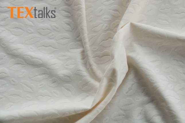 But the fashionable fabrics can also be produced on all other models of the RASCHELTRONIC® series. They feature a high-impact all-over pattern with subtle sculptural motifs, are soft to the touch, comfortable to wear and offer a gentle shaping function thanks to their particular stress-strain behavior. Reasons for the ideal lingerie properties are well-thought-out lapping and material combinations. For production, a textured polyamide high filament yarn and elastane were processed – the latter in a relatively high proportion and by means of a 2 needle overlap instead of the usual one by one lap. This lends the fabric more strength and enhances the plastic effects of the pattern. What’s more, the elastane fixing in the textile structure is supported, thus improving the possibility to cut freely, and the fabric can easily be used without seams. Despite the two-needle-overlap, the fabrics are relatively lightweight: the surface weight is approx. 180 g/m².