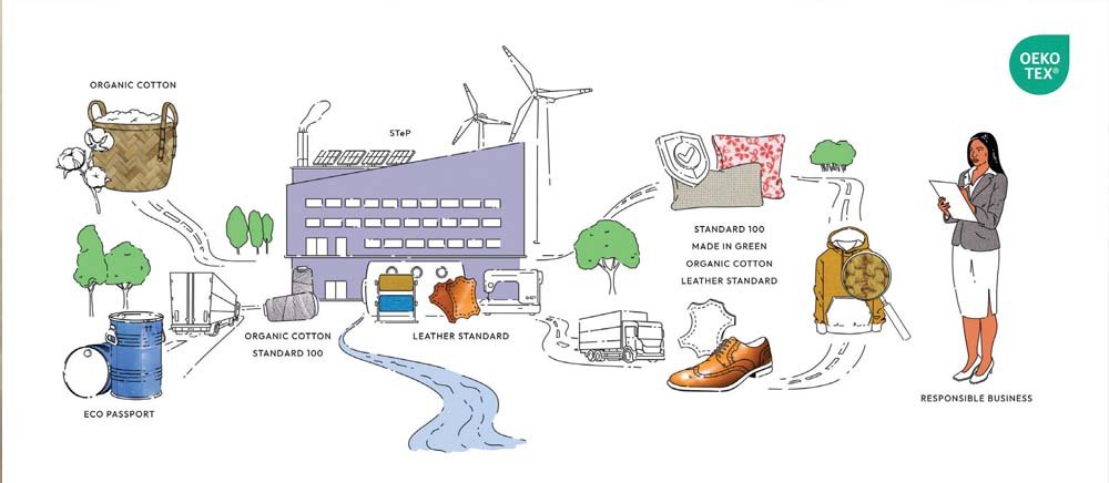 STANDARD 100 is the most widely recognized certification, ensuring textiles are tested for harmful substances. LEATHER STANDARD applies the same rigorous testing criteria to leather goods. ECO PASSPORT certifies the safety of chemicals used in production. STeP stands for Sustainable Textile and Leather Production and evaluates factories based on six sustainability-focused modules, driving responsible production processes. MADE IN GREEN combines several OEKO-TEX® standards, providing traceability and consumer assurance of ecological and social production. RESPONSIBLE BUSINESS is a management process certification to meet supply chain due diligence. The latest addition, ORGANIC COTTON, was introduced to address the growing need for transparency and traceability in organic cotton textiles.`
