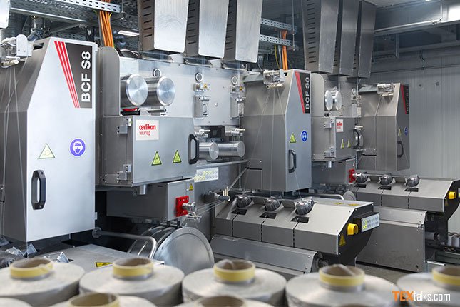 Whether Monocolor or Tricolor, the performance data and technological details of the BCF S8 ver-sions have already made a huge impression at numerous exhibitions and road shows: With up to 700 filaments per thread, the BCF S8 significantly outperforms its sister, the BCF S+ (400 filaments), also guaranteeing finer titres of up to 2.5 dpf. In addition to that, the process speed of the new Witras III-37 winder is higher than ever at 3,700 m/min – and provides increased throughput of up to 15 percent in comparison to previous technologies. The bottom line is a system efficiency of 99 percent, as well as possible energy savings of up to 5 percent per kilogramme of yarn.
