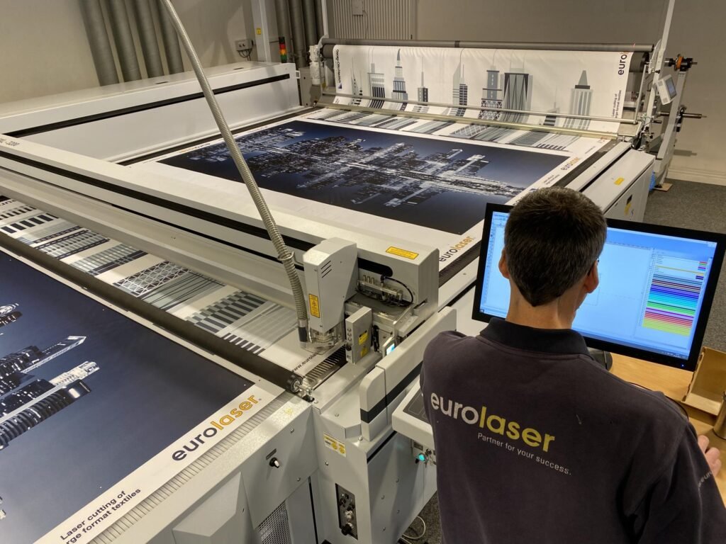 POSITIONplus and LaserScout ensure that the processing of printed workpieces with systems from eurolaser can always be carried out with the highest quality and performance. The technology is compatible with all laser machines offered by eurolaser and also works in combination with additional tools. Parallel to the processing head, each of the systems can be equipped or retrofitted with up to two additional tool heads from the ZÜND product portfolio. In addition to classic contour cuts, the eurolaser system is then also capable of milling fittings for automotive applications, for example, or mechanical assembling large-area soft signage products using a knife. In combination with the optical recognition system from eurolaser, a maximum degree of automation of the entire workpiece processing is thus achieved while obtaining the highest product quality.