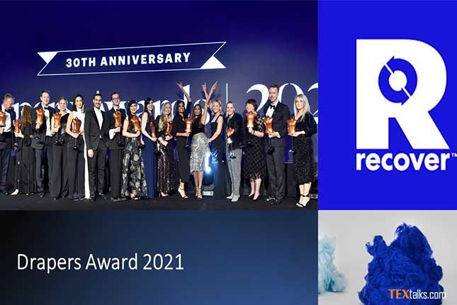 Recover was presented with the Disruptor Award at the Drapers Award 2021 for its efforts regarding sustainability. Recover™ is a leading material sciences company and global producer of low-impact, high-quality recycled cotton fiber and cotton fiber blends. The company was recognized for its disruptive business model, which aims to scale its recycled cotton fiber production to help more brands meet their sustainability goals.