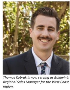 In addition, Kobrak is now serving as Baldwin’s Regional Sales Manager for the West Coast region. He is responsible for driving sales growth with print and packaging customers in Alaska, Arizona, California, Idaho, Nevada, Oregon, Utah, Washington and western Canada. Most recently, he was a sales representative for global film manufacturer Multi-Plastics.