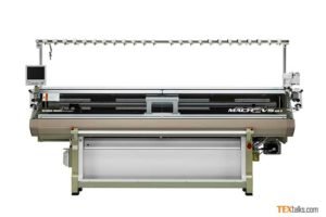 SHIMA SEIKI’s benchmark SVR-series computerized shaping machines have undergone an overhaul resulting in the new N.SVR series. The SVR123SP likewise adds adopts the “N.” designation becoming the N.SVR123SP. A special loop presser bed mounted above the rear needle bed makes it capable of unique designs in knit fabrics—especially inlay patterns—which allow hybrid textiles that combine both knit and weave characteristics in the same fabric. In addition, the i-Plating® option can alternate yarn colors in any pattern, producing jacquard-like designs using plain jersey stitch. Plating can be performed within the same course and for individual needles. In combination with the loop presser and patented spring-type moveable sinker system even greater diversity in knit design is possible. Meanwhile a lighter, more compact carriage combines with high-speed carriage turnaround of the R2CARRIAGE® system as well as a maximum knitting speed of 1.4m/sec to yield higher productivity. N.SVR123SP carries over other established SHIMA SEIKI technology such as the Digital Stitch Control System (DSCS®), stitch presser, takedown comb and yarn gripper and cutter system as well as WideGauge® knitting capability. An all-new full-color LCD touch-screen control panel greatly improves on the previous monochromatic display as well. At ITMA N.SVR123SP is shown knitting chair fabric using velvet-like tape yarn which has a natural tendency to twist. Otherwise impossible to knit correctly, it is fed into the machine with the aid of the special Yarn Unwinding Device which helps to handle such challenging material.