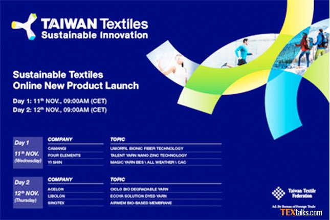 Taiwan Textile Federation (TTF) is organizing a two-day online streaming event to assist Taiwan’s industries for their sustainability efforts with the support of the Bureau of Foreign Trade.