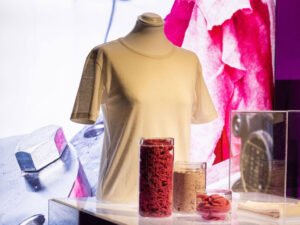 The Future is Here takes us further into the world of innovation and shows how our second skin – clothing – is transforming through the ground-breaking materials and technical solutions that are right now reinventing the fashion industry. Both physically and digitally, visitors can explore fabrics made of CO2, lab-grown cotton, algae dyes and textiles, leather made of wine leftovers, clothes of food crop waste, and the first machine that can recycle blend-material textiles at scale. It sounds like science fiction, but it is actual science. These innovations exist and are already in use.