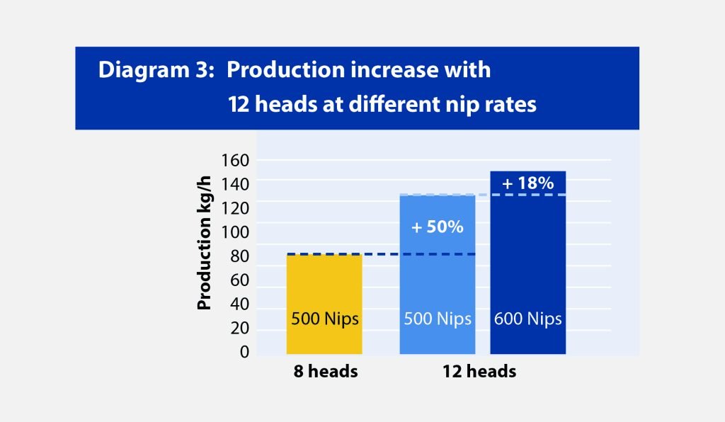 Our customer Bakan Tex, headquartered in Uzbekistan, has already enjoyed an exclusive sneak-peek at this machine. Bakan produces 14,500 tons of combed cotton yarn per year (ranging from Ne 20 to Ne 40) at its state-of-the-art spinning mill. The company has a high degree of automation and focuses on future-oriented technologies. “The production and quality data of the TCO 21XL are simply fantastic,” says Mr. Sekar, General Manager at Bakan Tex. “We’re incredibly excited about how the 12-head comber is going to benefit our business.” Bakan Tex was able to perform a comprehensive comparison between eight-head and twelve-head machines under identical production conditions because it already has TCO combers installed. You can see the results on Diagram 1 and Diagram 2.
